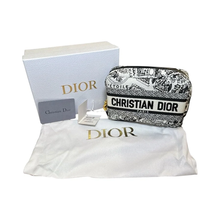 CHRISTIAN DIOR White/Black Canvas Plan De Paris Canvas Caro Cosmetic Pouch (GWP)